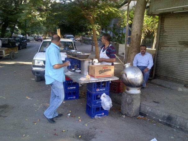 I have to laugh when I hear people talking about “Street Food” which at the moment seems to be a trend. The photo below was taken in a Cairo Suberb a few years ago and shows a typical Egyptian Street vendor serving up “Foul” which is a type of spicy bean stew served with bread. I wasn’t brave enough to try it!